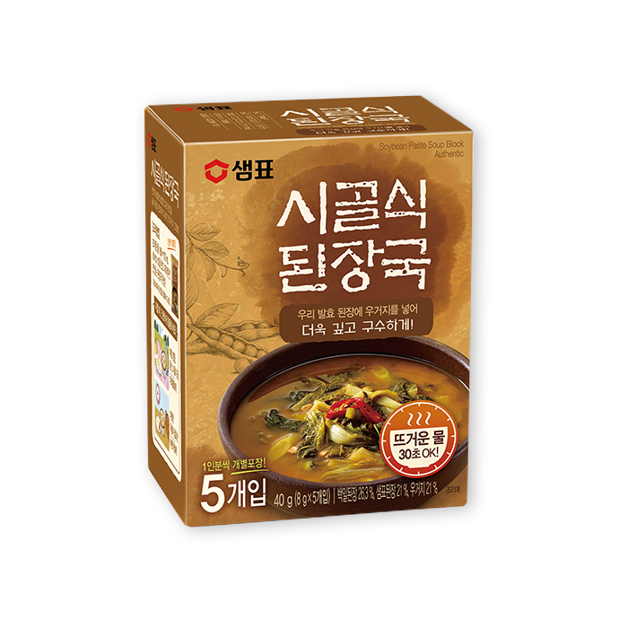 동결건조된 블록으로, 내용물은 된장, 우거지, 홍고추, 다시마, 멸치엑기스 등이다.