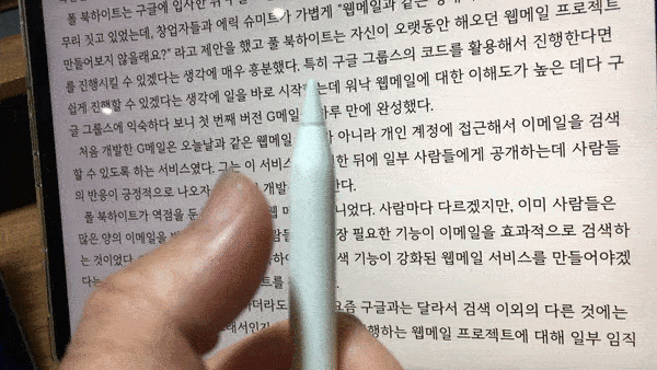 아이패드에서 리디북스로 이북을 읽으며 애플 펜슬 더블탭을 하면 다음장으로 넘어가는 기능이 있네요.