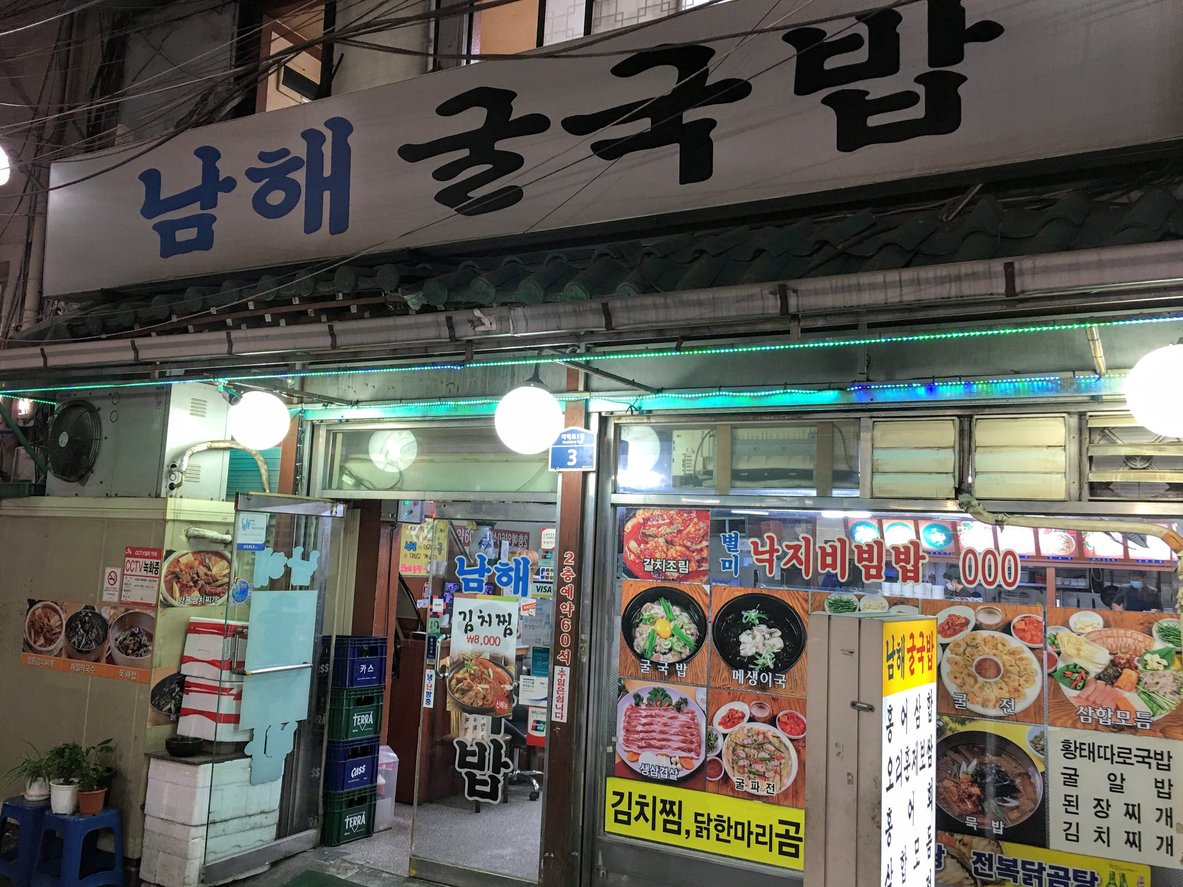 종로5가역 2번출구, 큰 길 안쪽에 위치한 '남해 굴국밥'.