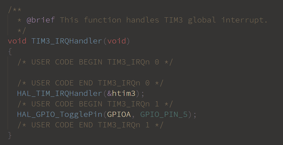 이제 CubeMX에서 전체 코드를 생성하고 Timer3 설정부분의 코드가 아래와 같은지 확인한다.