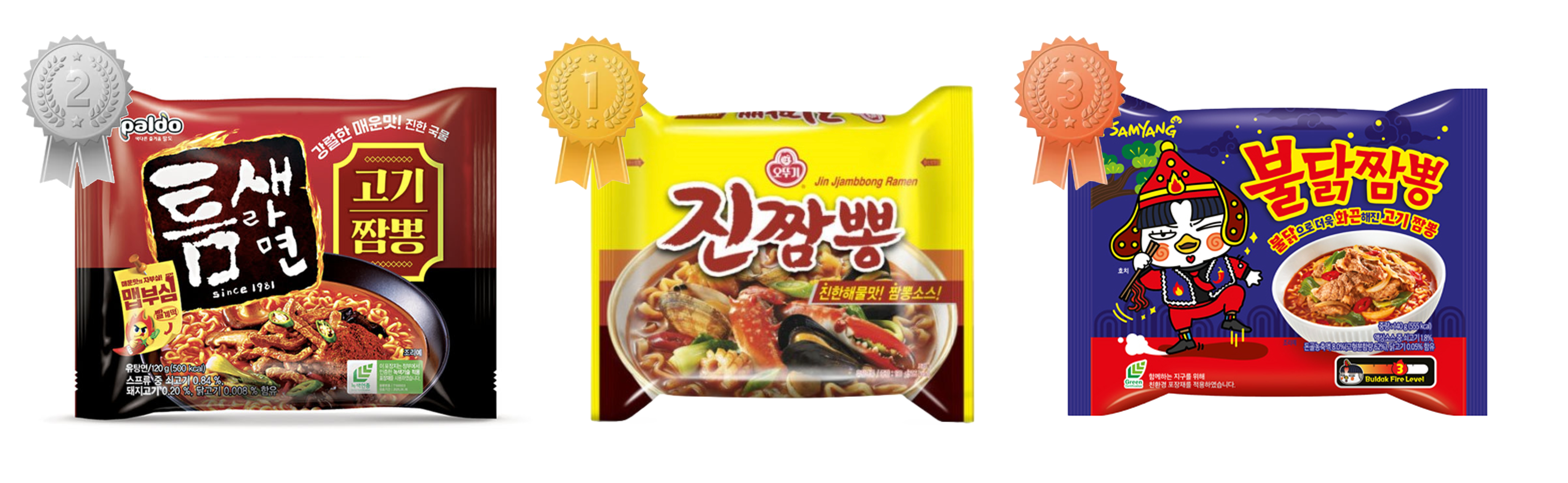 현시점, 매장에서 살 수 있는 짬뽕 라면(봉지면, 국물라면)을 리스트업 해보자. 각 회사의 공식몰에서 검색했다.